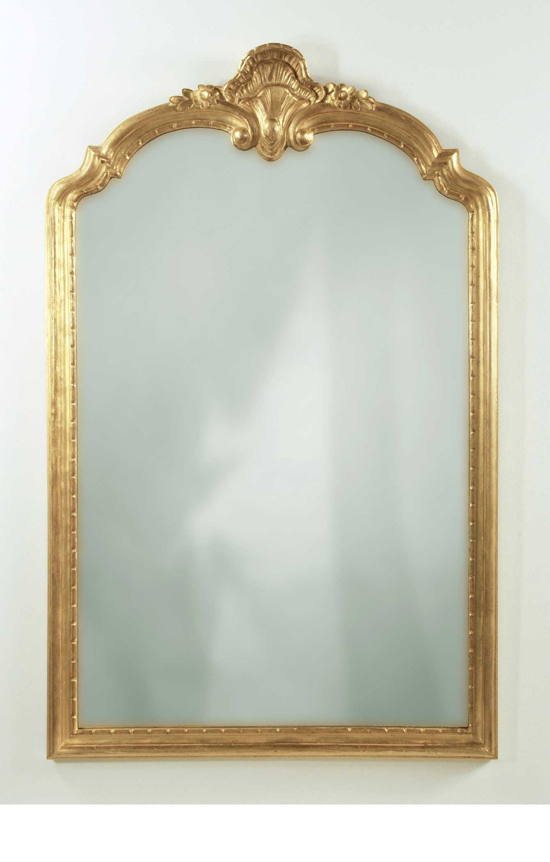 Handsome and beautifully proportioned this looking glass is finished in antique gold leaf with a...