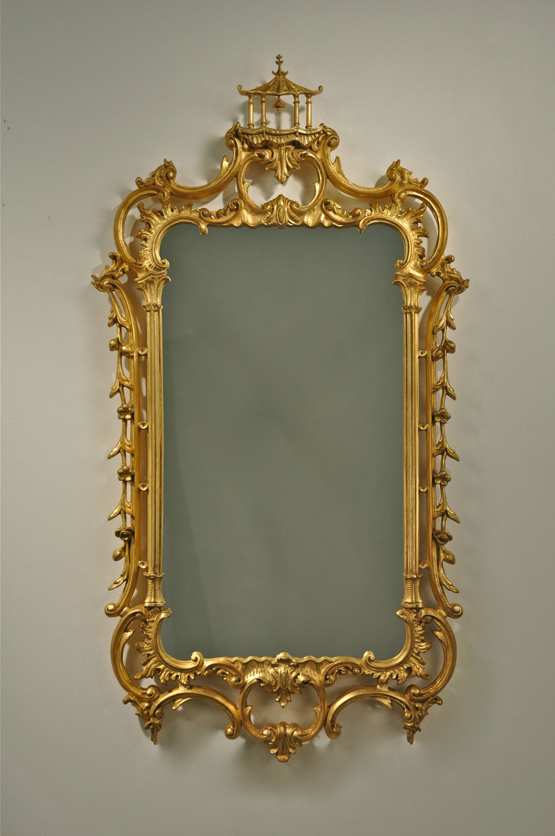This mirror is an outstanding example of a carved chinoiserie with a pagoda finial,openwork with...