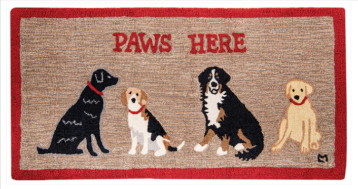 This Paws Here hooked wool welcome rug is a great accent to any dog lover's...