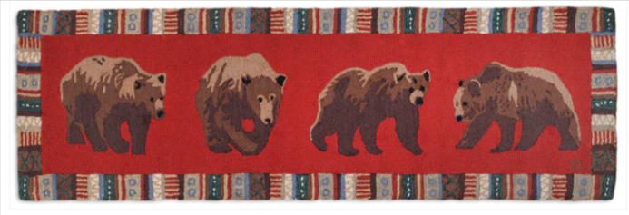 - Our Cinnamon Bears - 2.5' x 8' Runner rug has been hand-hooked with exceptional care by skilled craftsmen—providing a comfortable cushioning experience for your feet and are made with durable wool and a cotton backing for added strength and durability. The result is a premium decorative rug that adds a charming touch of handcrafted excellence to entryways, kitchens, hallways, bedrooms, living areas, and more.