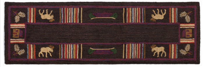 Complementing the night moose runner, but a bit simpler, this woodland runner will make a statement in your home. Rich colors make this handsome rug stand out in any room. Designed in Vermont by Laura Megroz.