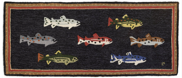 - Our River Fish - 2.5' x 6' Runner rug has been hand-hooked with exceptional care by skilled craftsmen—providing a comfortable cushioning experience for your feet and are made with durable wool and a cotton backing for added strength and durability. The result is a premium decorative rug that adds a charming touch of handcrafted excellence to entryways, kitchens, hallways, bedrooms, living areas, and more.