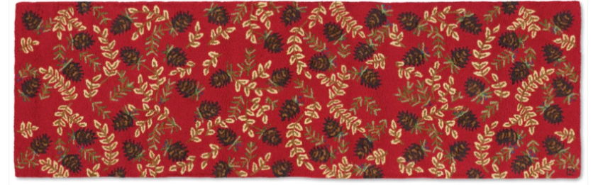- Our Ruby Pinecones - 2.5' x 8' Runner rug has been hand-hooked with exceptional care by skilled craftsmen—providing a comfortable cushioning experience for your feet and are made with durable wool and a cotton backing for added strength and durability. The result is a premium decorative rug that adds a charming touch of handcrafted excellence to entryways, kitchens, hallways, bedrooms, living areas, and more.