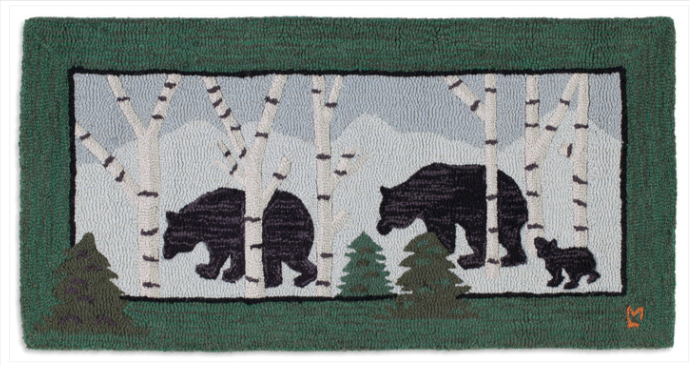 - Our Three Bears In Birch Woods - 2' x 4' rug has been hand-hooked with exceptional care by skilled craftsmen—providing a comfortable cushioning experience for your feet and are made with durable wool and a cotton backing for added strength and durability. The result is a premium decorative rug that adds a charming touch of handcrafted excellence to entryways, kitchens, hallways, bedrooms, living areas, and more.