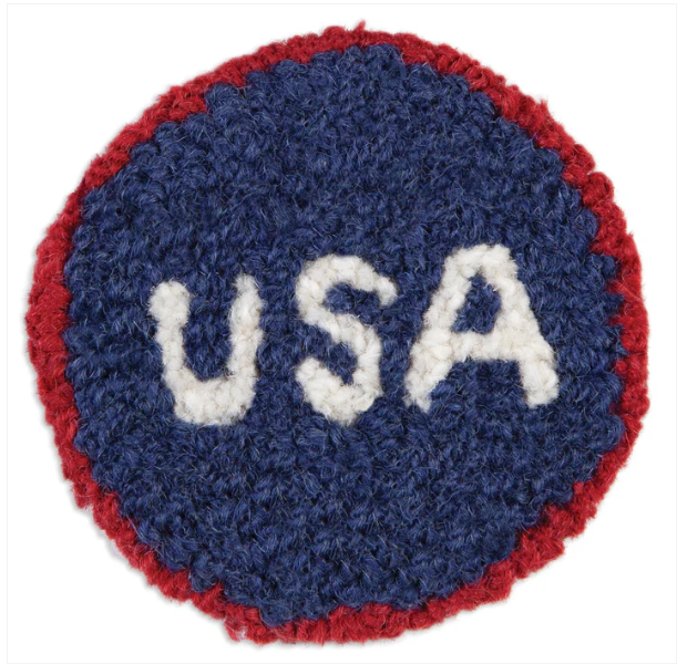 Stylish an absorbent, these U.S.A. themes hooked wool coasters are both decorative and functional. They will add some creative décor to your table while keeping pesky water stains at bay. Set of 4 Hooked Wool Coasters.