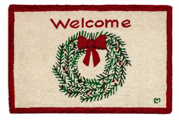 - Our Winter Welcome Wreath - 2' x 3' rug has been hand-hooked with exceptional care by skilled craftsmen—providing a comfortable cushioning experience for your feet and are made with durable wool and a cotton backing for added strength and durability. The result is a premium decorative rug that adds a charming touch of handcrafted excellence to entryways, kitchens, hallways, bedrooms, living areas, and more.