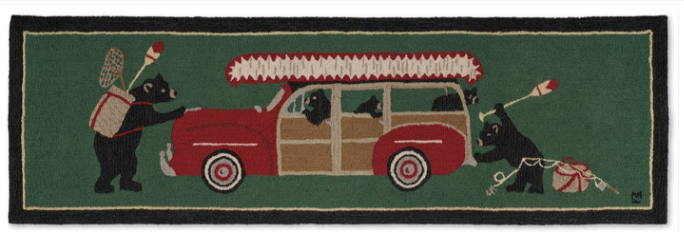 - Our Woody Wagon Bears - 2.5' x 8' Runner rug has been hand-hooked with exceptional care by skilled craftsmen—providing a comfortable cushioning experience for your feet and are made with durable wool and a cotton backing for added strength and durability. The result is a premium decorative rug that adds a charming touch of handcrafted excellence to entryways, kitchens, hallways, bedrooms, living areas, and more.